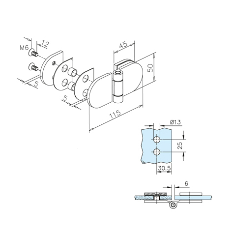 Glasdeurscharnier, glas/glas voor glasdikte 6 - 10 mm - Chroom design.