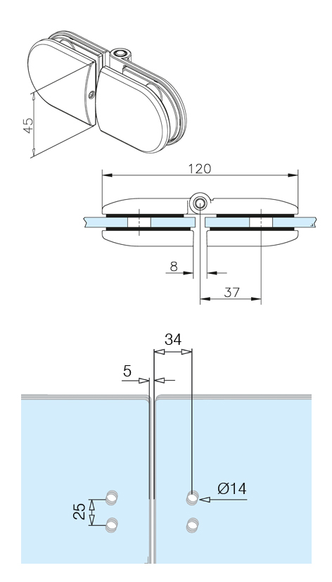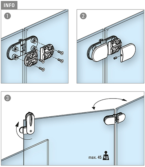 RVS deurscharnier, glas/glas voor glasdikte 6 - 12,76 mm.