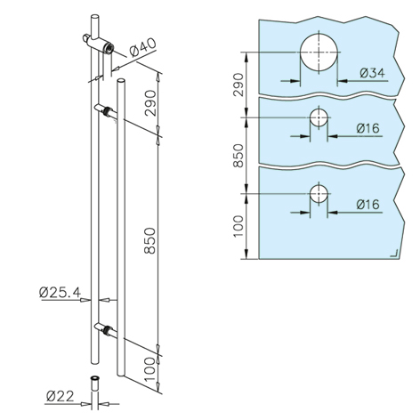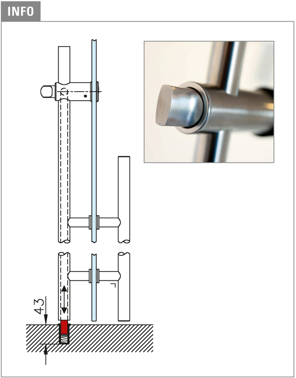 RVS deurgreep type F, dubbelzijdig, met slot system voor glasdikte 8 - 12 mm.