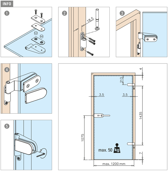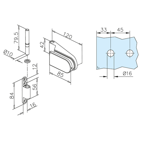 RVS glasdeurscharnier, voor glasdikte 8 - 10 mm